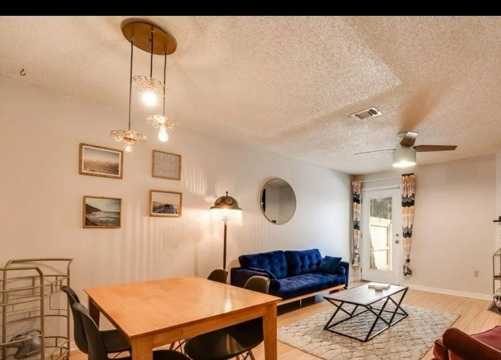 Built in the 80s, Lil Blue sported popcorn ceilings everywhere. And although that first Zillow photo may look alright, it gave a stuffy feel to the house and desperately needed to be removed if we were going to create the sense of openness that I envisioned.
