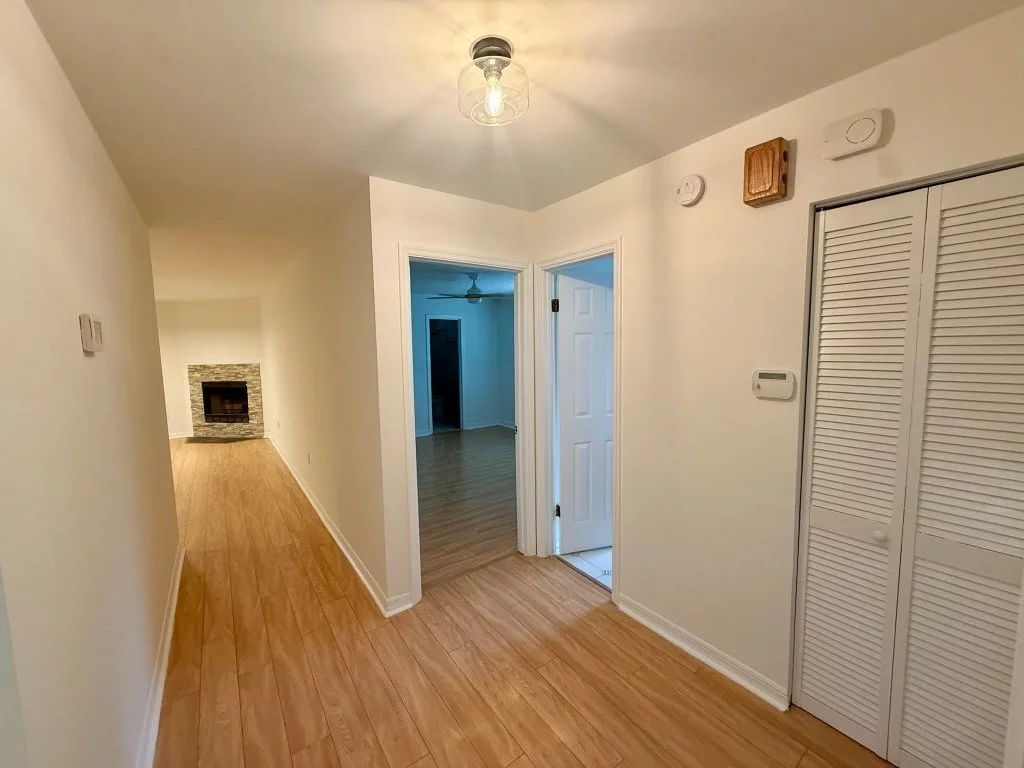 So as we make our way out of the bedrooms and bathrooms, it’s important not to neglect the in-between spaces. Take this hallway for instance. Seems minute, but simply changing this light fixture brightened up the path, giving curiosity and depth to the home. Would you guess that’s $20 well spent?