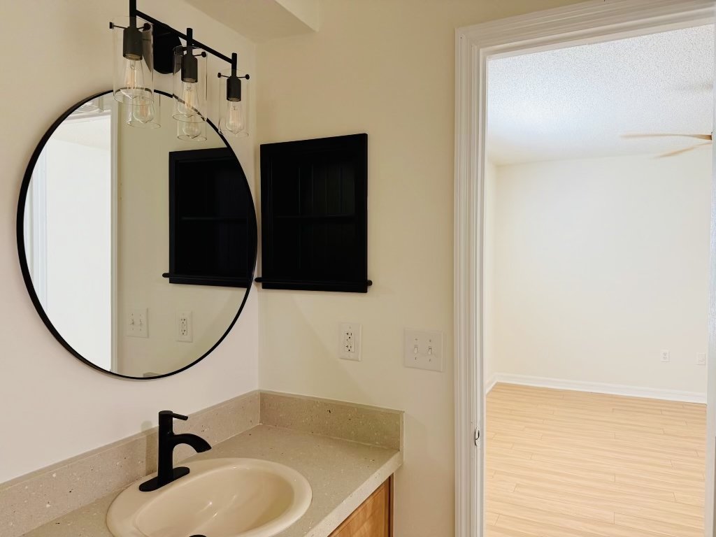 In this case, I wanted to create cohesion. The home had three mismatched fans that varied in style, the bathrooms were interesting art projects themselves, and most of the lighting throughout the house was super harsh.